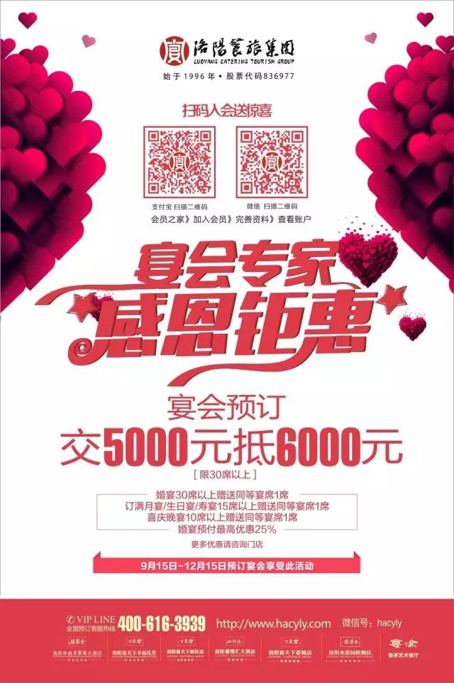 在洛陽(yáng),洛陽(yáng)餐旅集團(tuán)創(chuàng)造了洛陽(yáng)宴會(huì)的一系列“之***”:覆蓋西工、澗西、洛龍、老城四個(gè)區(qū)的6家酒店大大小小近20個(gè)宴會(huì)廳,每年承接超過(guò)6000場(chǎng)各類(lèi)宴會(huì),每年接待參加宴會(huì)的客人超過(guò)百萬(wàn)人次,每年總接待量超過(guò)400萬(wàn)人次……這樣的規(guī)模,在洛陽(yáng)宴會(huì)接待上處于龍頭地位,成為“宴會(huì)專(zhuān)家”的***。