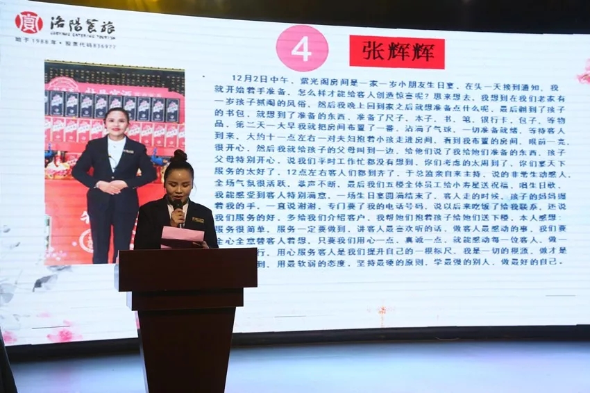 親愛的客人們,您是否在洛陽餐旅實(shí)業(yè)旗下酒店用過餐,您是否有過難忘的用餐經(jīng)歷,在您所享受到的優(yōu)質(zhì)服務(wù)背后,其實(shí)凝聚著無數(shù)餐旅人的用心與誠意。在洛陽餐旅這個大家庭中,有很多***的餐飲服務(wù)人員,他們用心待客,全心全意服務(wù),為客人們留下了難忘的記憶。為了鼓勵大家不斷提升服務(wù)水平,精益求精,全年中的每個月,洛陽餐旅實(shí)業(yè)都會開展以“一情二用心”為主題的感動服務(wù)案例分享大會,接著,讓我們走進(jìn)現(xiàn)場,一起傾聽那些感動的服務(wù)故事吧。